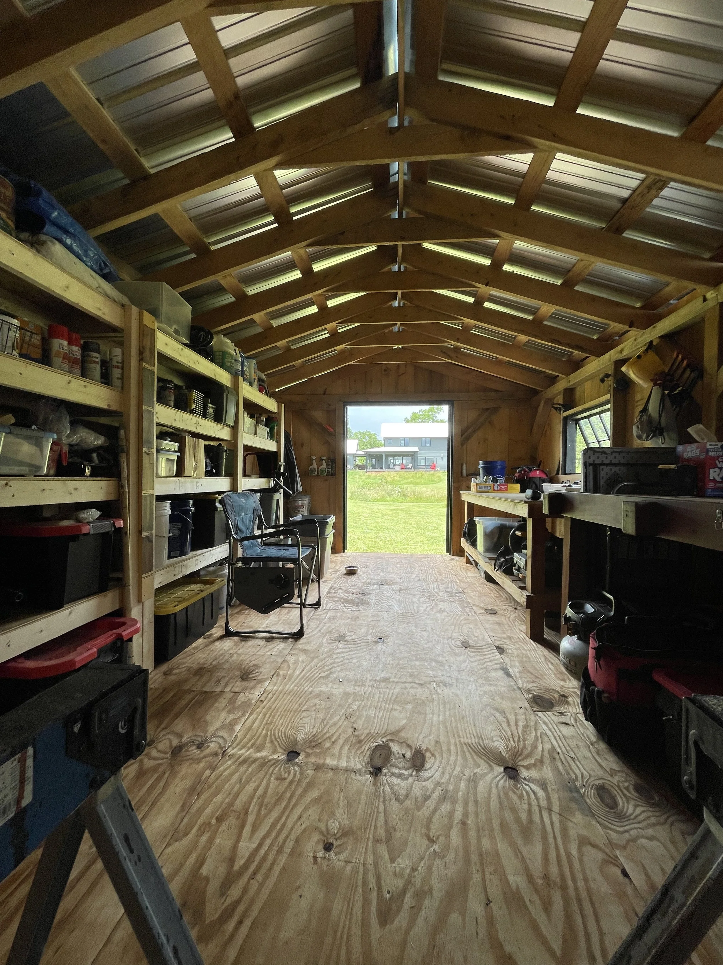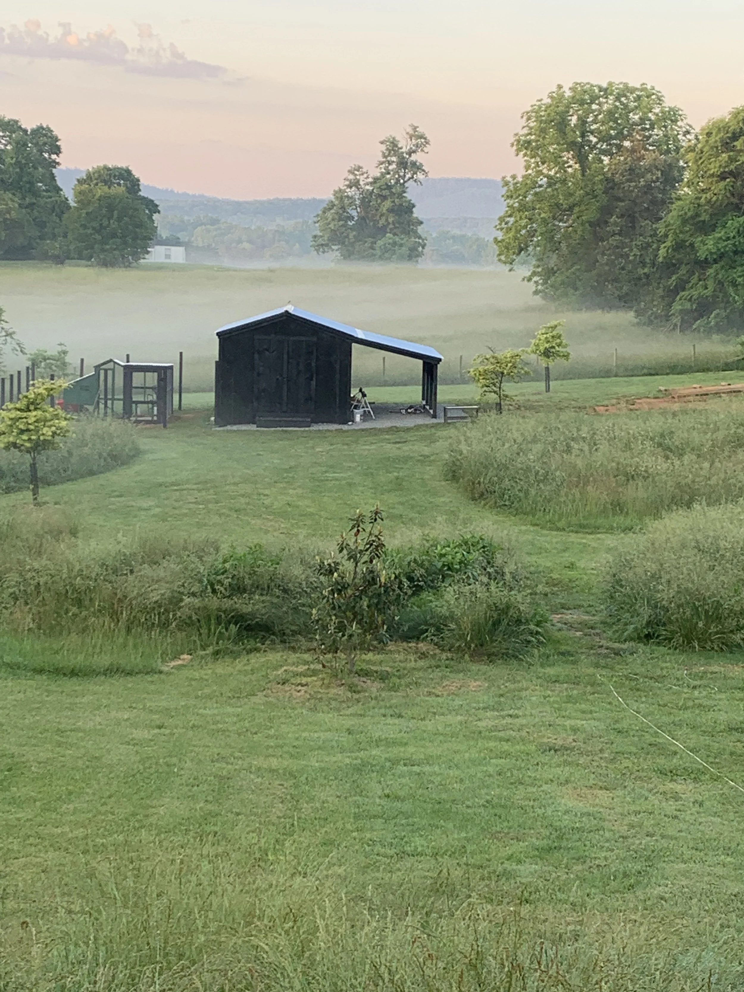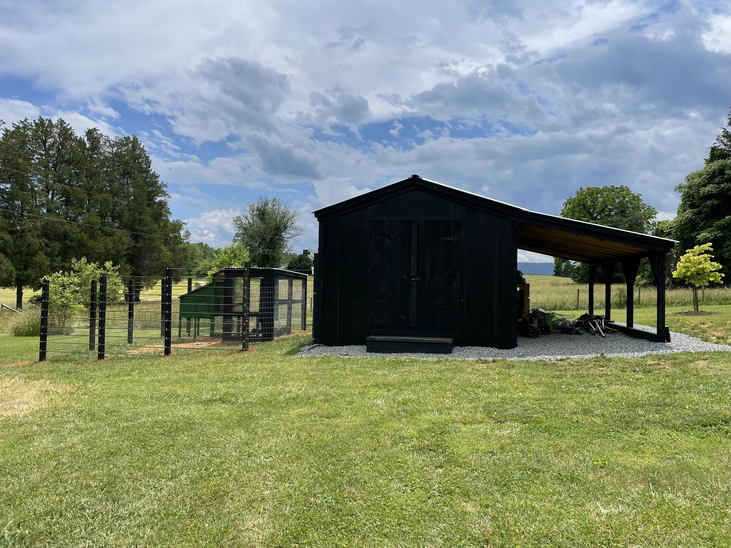 This was a really exciting project for me because it was my own workshop! It was built from a kit of solid Hemlock post and beam from Jamaica Cottages in Vermont. I also built a pen for the chicken coop and some raised garden beds. I enjoyed the whole process: from working with permitting at Albemarle, County, to leveling the field and building the foundation, and finally building and painting the barn.